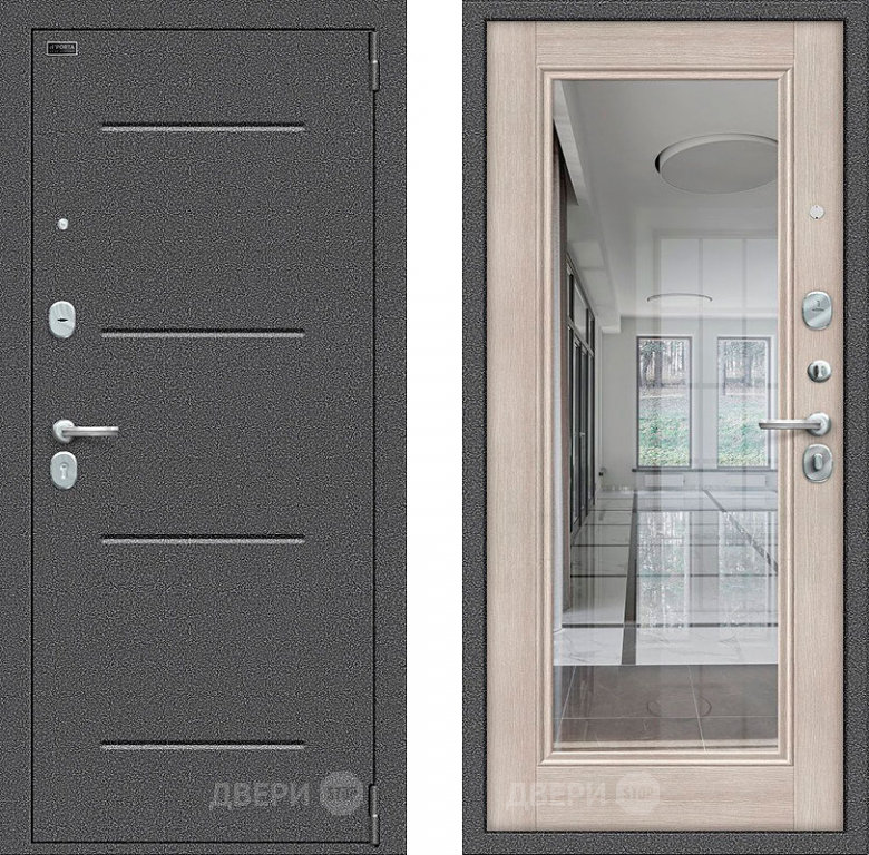 Входная металлическая Дверь Bravo Porta S-2 104/П61 с зеркалом Капучино в Раменском 860х2050 мм