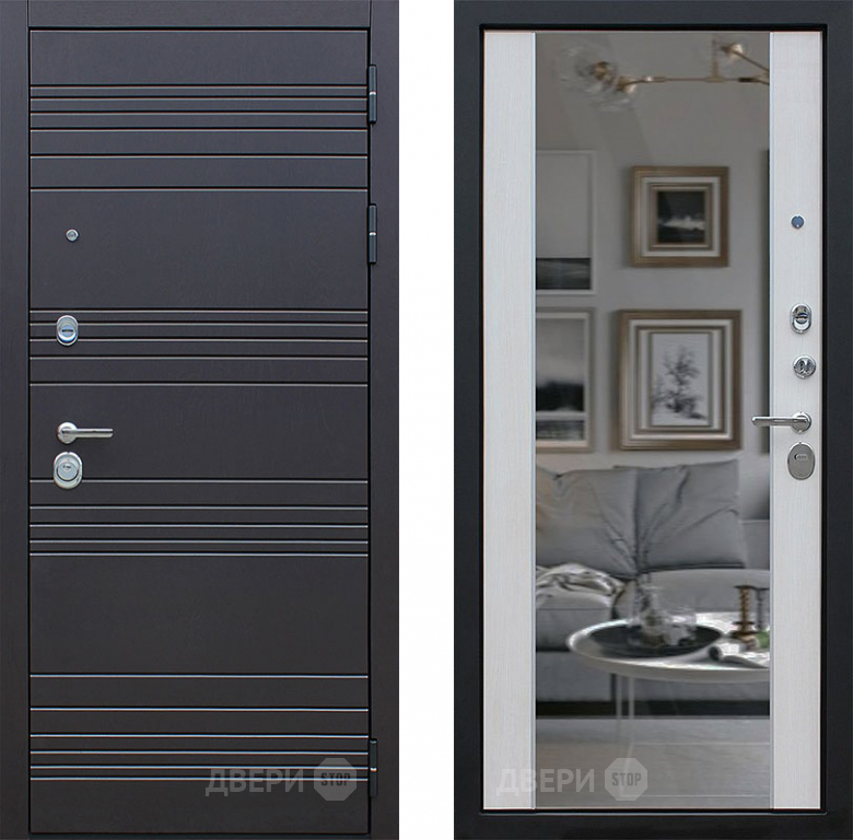 Входная металлическая Дверь АСД Дуэт с зеркалом Лиственница белая в Раменском 860х2050 мм