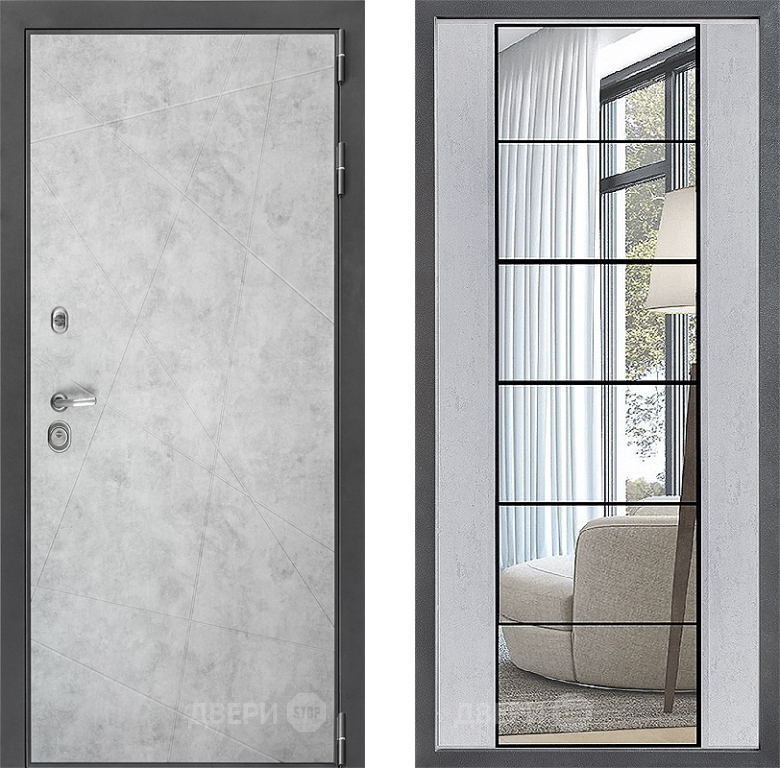 Входная Дверь Дверной континент ДК-3/743 ФЛЗ-2 Зеркало Бетон светлый 960x2050 мм