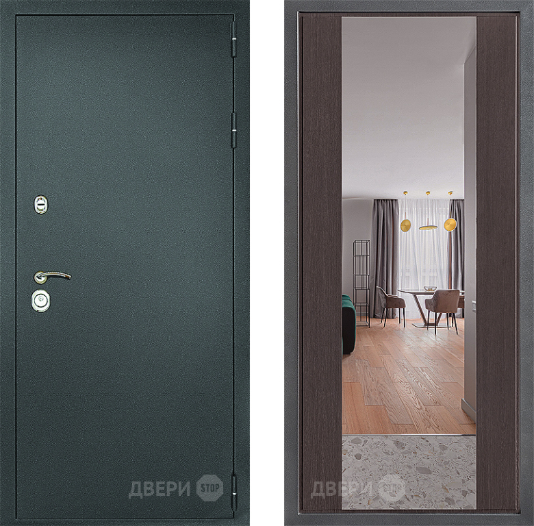 Входная Дверь Дверной континент Рубикон Серебро Дизайн ФЛЗ-1 Зеркало Венге 860x2050 мм