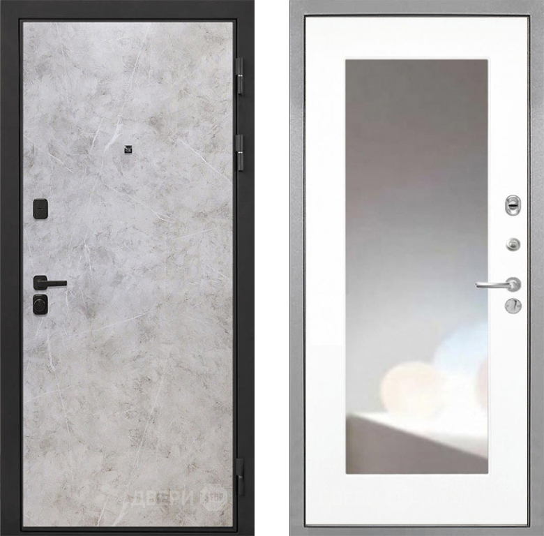 Входная Дверь Интекрон (INTECRON) Профит Black Мрамор Светлый ФЛЗ-120-М Зеркало Белый матовый 960x2050 мм
