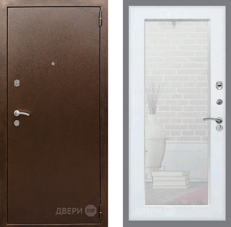 Входная Дверь Рекс (REX) 1А Медный Антик Зеркало Пастораль Белый ясень 860x2050 мм