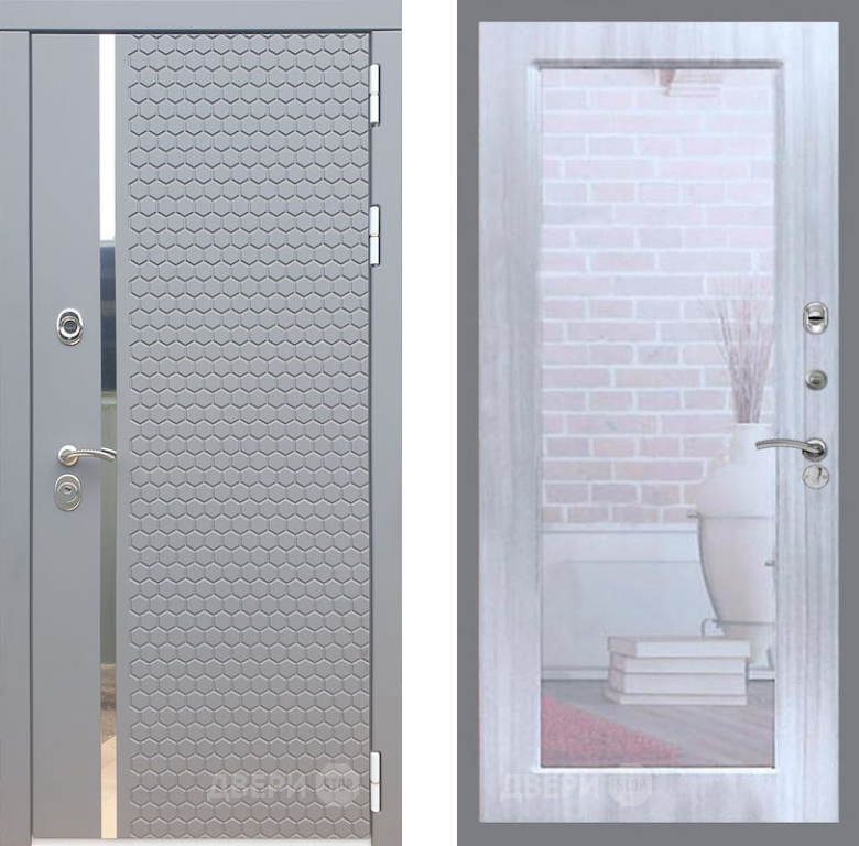 Входная Дверь Рекс (REX) 24 Зеркало Пастораль Сандал белый 960x2050 мм