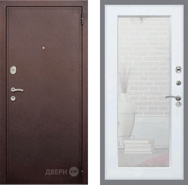 Входная Дверь Рекс (REX) 2 Медный Антик Зеркало Пастораль Белый ясень 860x2050 мм