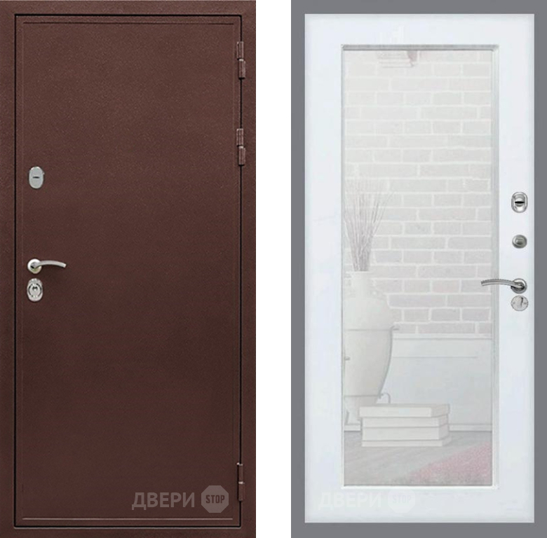Входная Дверь Рекс (REX) 5 металл 3 мм Зеркало Пастораль Силк Сноу 960x2050 мм