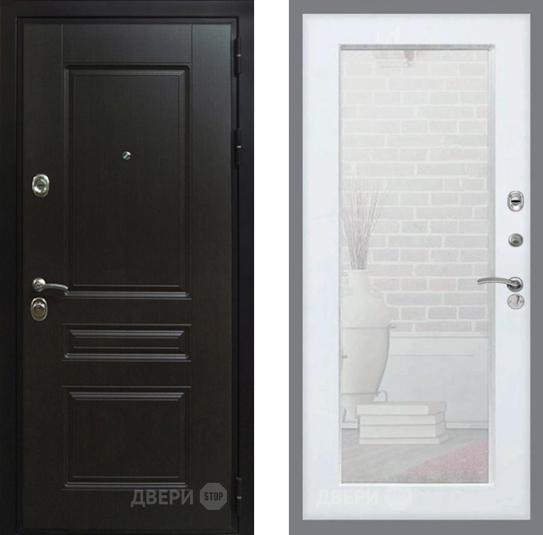 Входная Дверь Рекс (REX) Премиум-Н Зеркало Пастораль Силк Сноу 960x2050 мм
