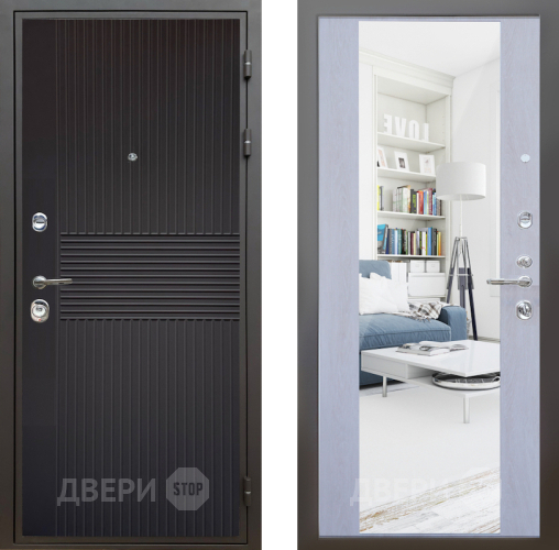 Входная Дверь Шелтер (SHELTER) Комфорт Черная шагрень 12 с зеркалом Дуб филадельфия крем 860x2050 мм