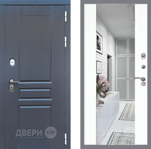 Входная Дверь Стоп ПЛАТИНУМ Зеркало СБ-16 Силк Сноу 860x2050 мм